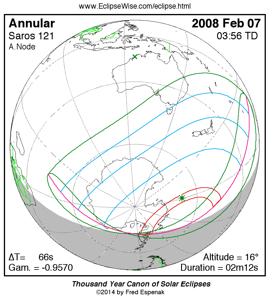 - Orthographic Map: Annular Solar Eclipse of 2008 Feb 07 - detailed map of eclipse visibility