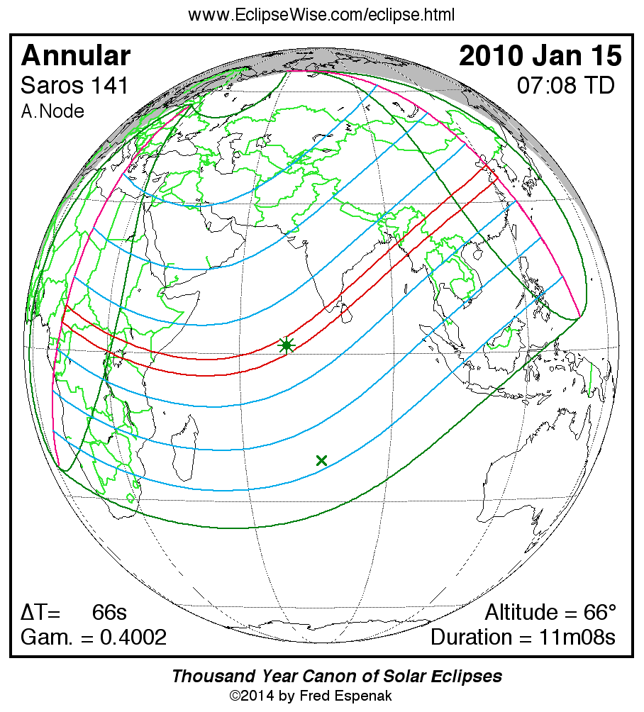 - Orthographic Map: Annular Solar Eclipse of 2010 Jan 15 - detailed map of eclipse visibility