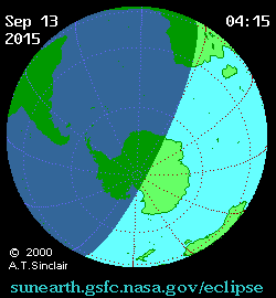 - Animated Map: Partial Solar Eclipse of 2015 Sep 13 - animated map of the Moon's shadows across Earth