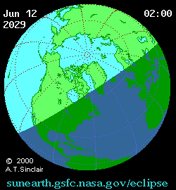 - Animated Map: Partial Solar Eclipse of 2029 Jun 12 - animated map of the Moon's shadows across Earth