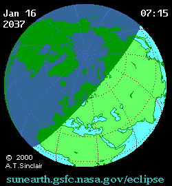 - Animated Map: Partial Solar Eclipse of 2037 Jan 16 - animated map of the Moon's shadows across Earth