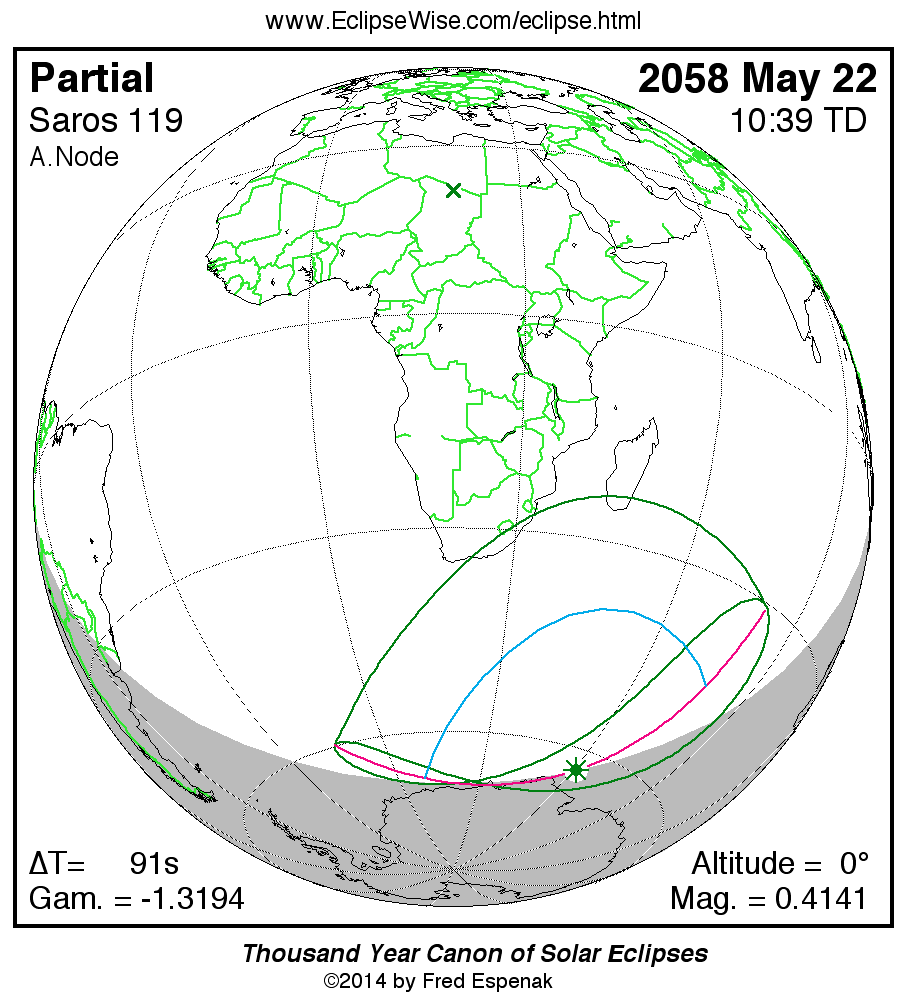 - Orthographic Map: Partial Solar Eclipse of 2058 May 22 - detailed map of eclipse visibility