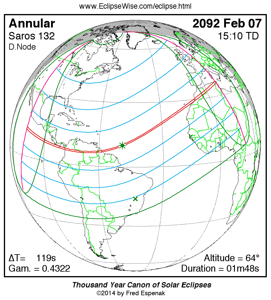 - Orthographic Map: Annular Solar Eclipse of 2092 Feb 07 - detailed map of eclipse visibility
