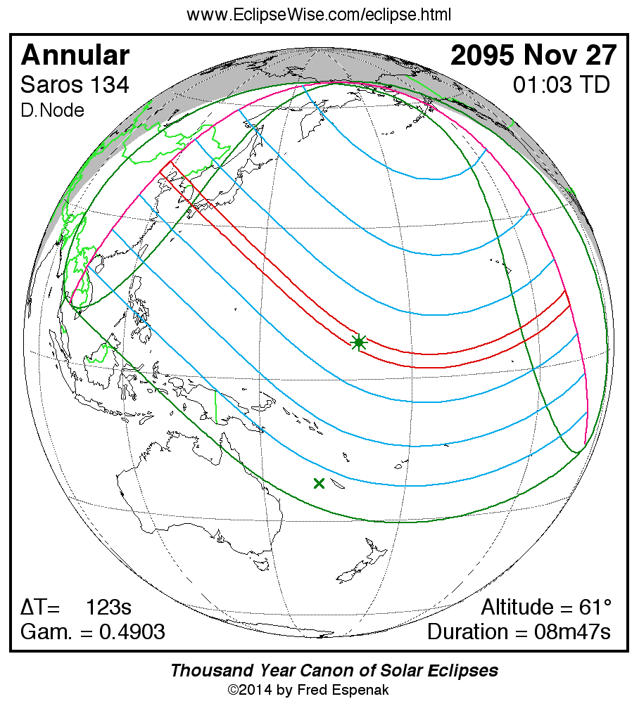 - Orthographic Map: Annular Solar Eclipse of 2095 Nov 27 - detailed map of eclipse visibility