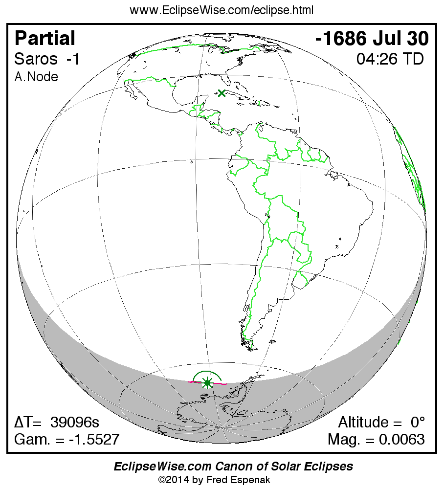 - Orthographic Map: Partial Solar Eclipse of -1686 Jul 31 - global map of eclipse visibility
