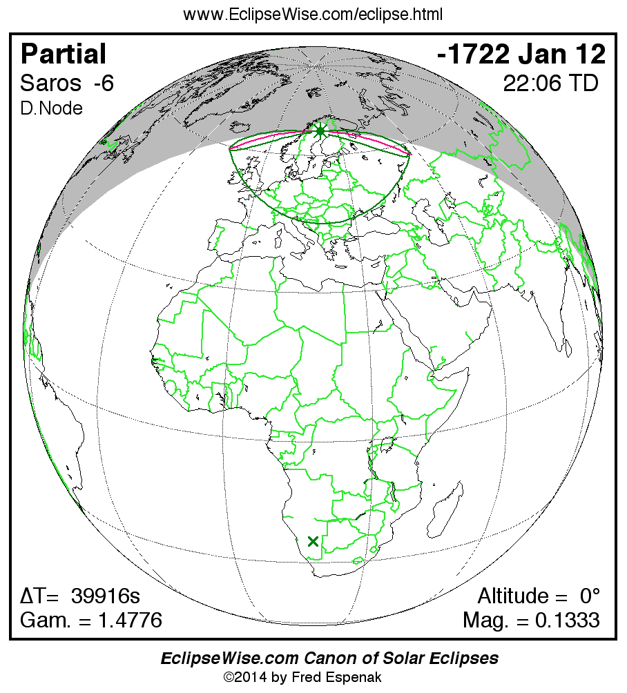 Polynomial Besselian Elements: Partial Solar Eclipse of -1722 Jan 12