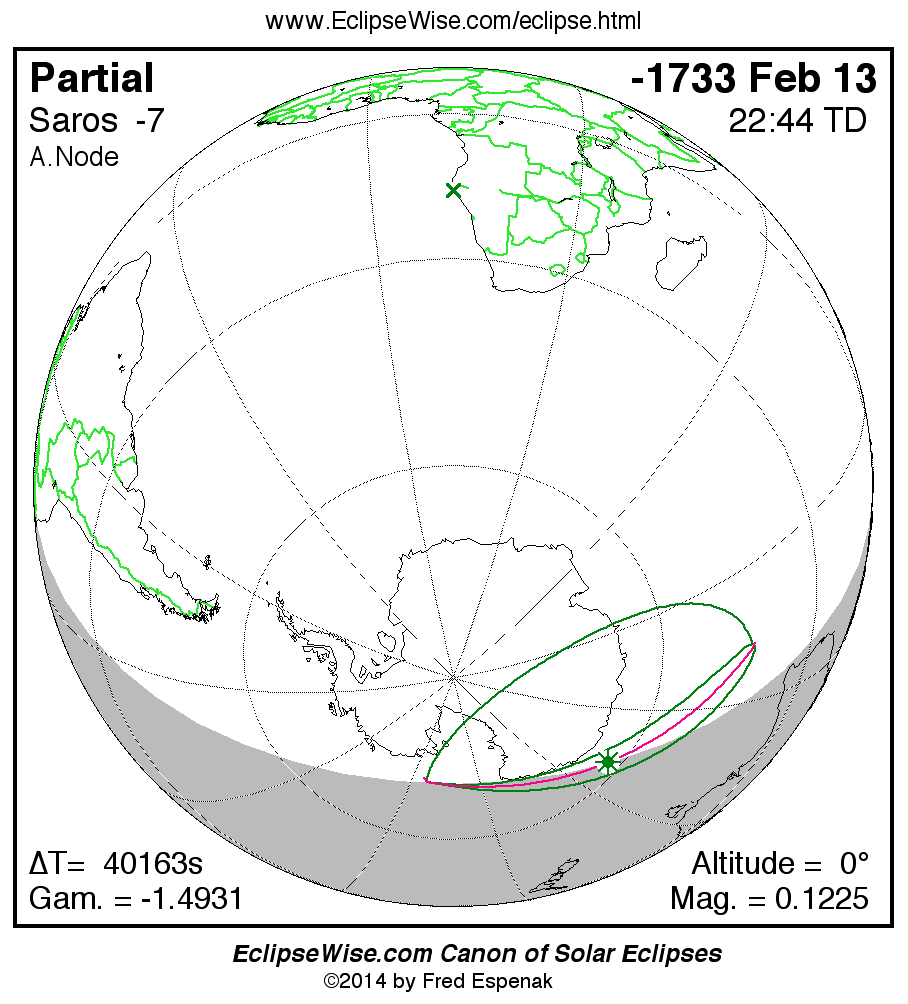 The instant of greatest eclipse takes place on -1733 Feb 13 at 22:43:42 TD (11:34:24 UT1).