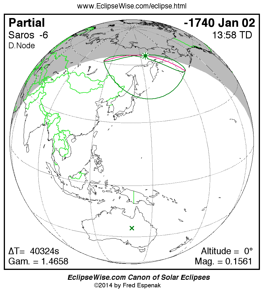 The instant of greatest eclipse takes place on -1740 Jan 02 at 13:58:25 TD (02:46:26 UT1).