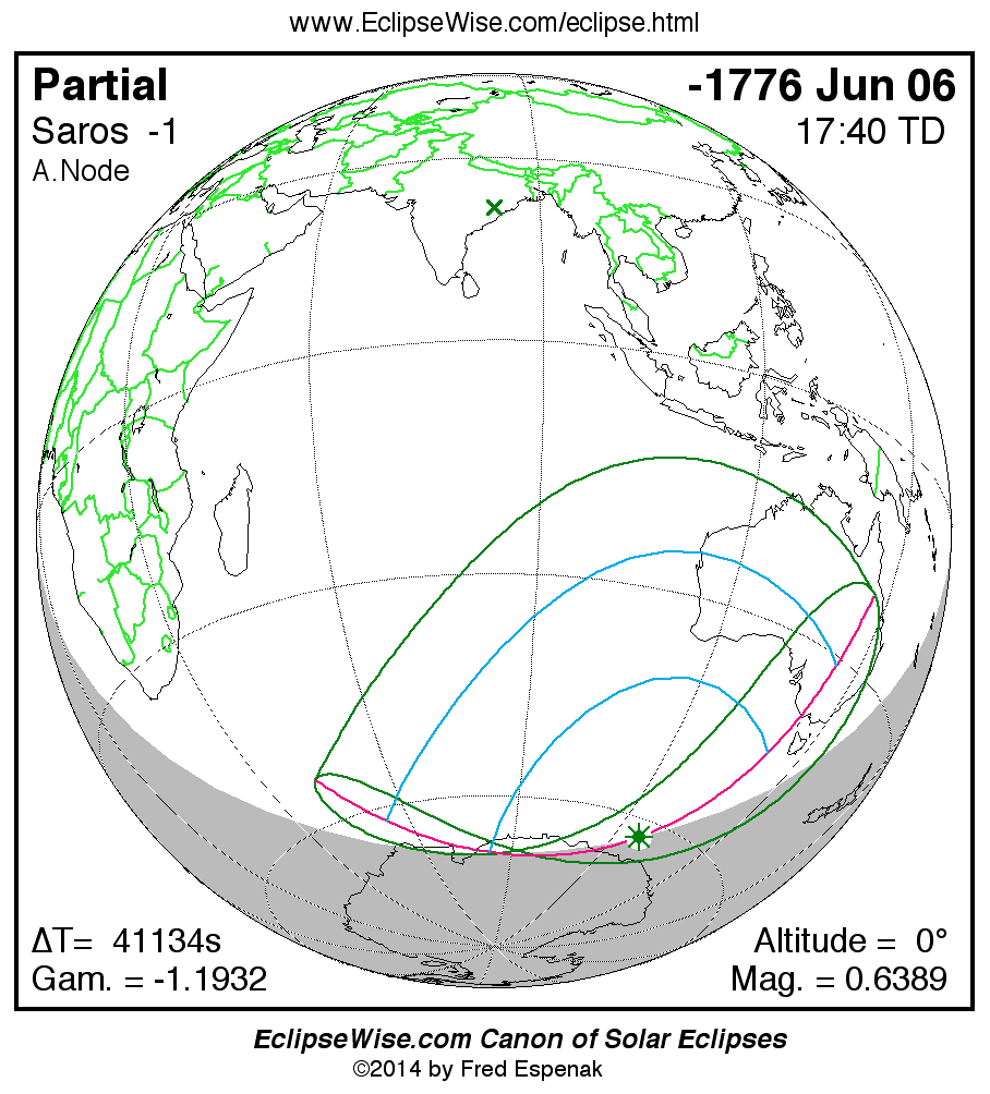 The instant of greatest eclipse takes place on -1776 Jun 06 at 17:40:22 TD (06:14:52 UT1).