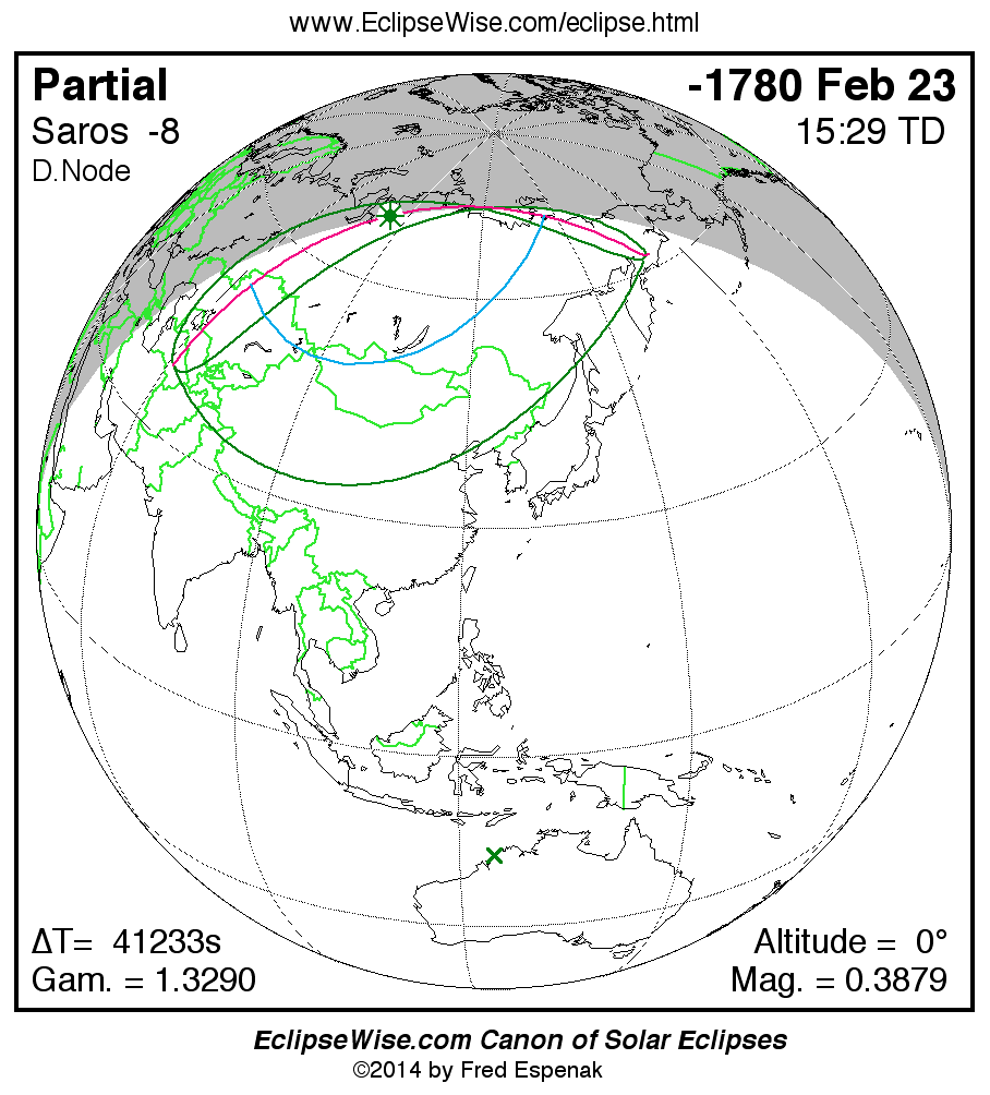 The instant of greatest eclipse takes place on -1780 Feb 23 at 15:29:15 TD (04:02:07 UT1).