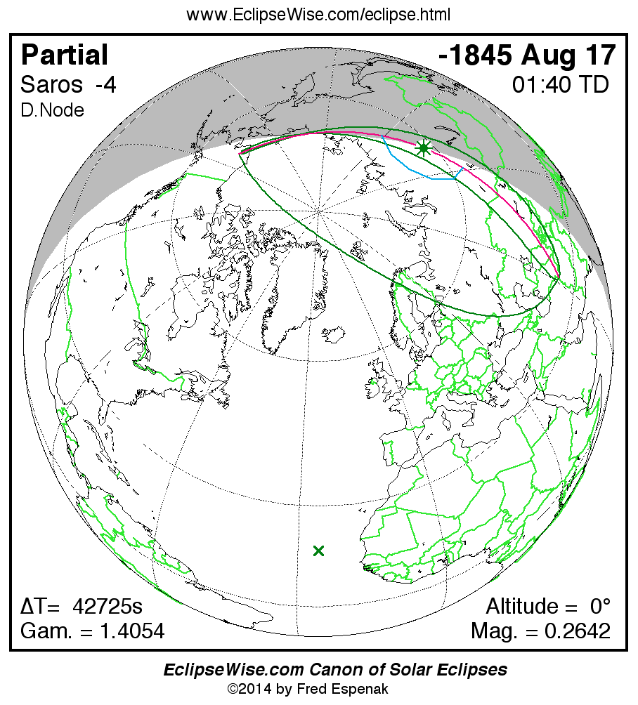 The instant of greatest eclipse takes place on -1845 Aug 18 at 01:40:25 TD (13:48:26 UT1).