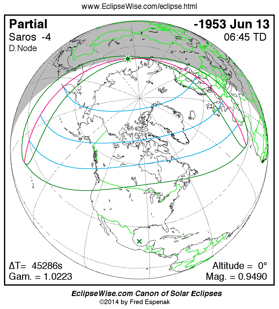 The instant of greatest eclipse takes place on -1953 Jun 14 at 06:45:24 TD (18:10:44 UT1).