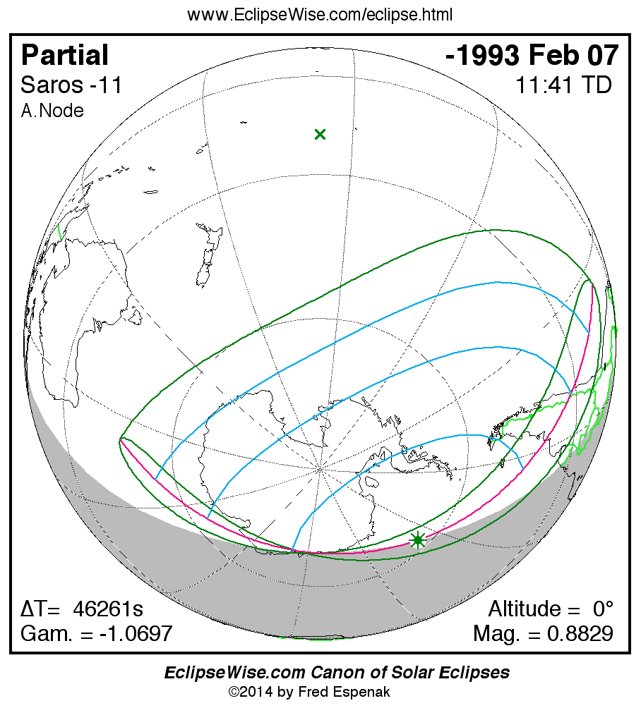 The instant of greatest eclipse takes place on -1993 Feb 08 at 11:40:52 TD (22:49:57 UT1).