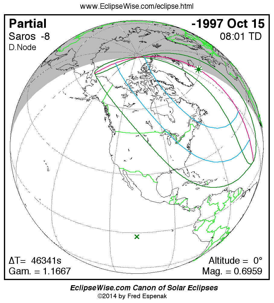 The instant of greatest eclipse takes place on -1997 Oct 16 at 08:01:06 TD (19:08:51 UT1).