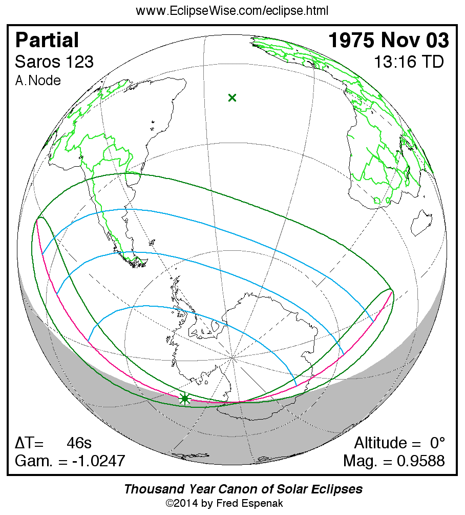- Orthographic Map: Partial Solar Eclipse of 1975 Nov 03 - detailed global map of eclipse visibility (Key to Figure)