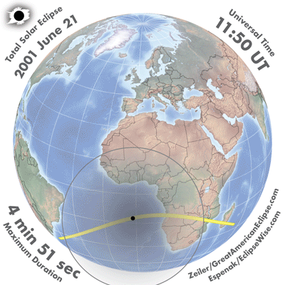 - Google Map: Total Solar Eclipse of 2001 Jun 21 - interactive map of the eclipse path