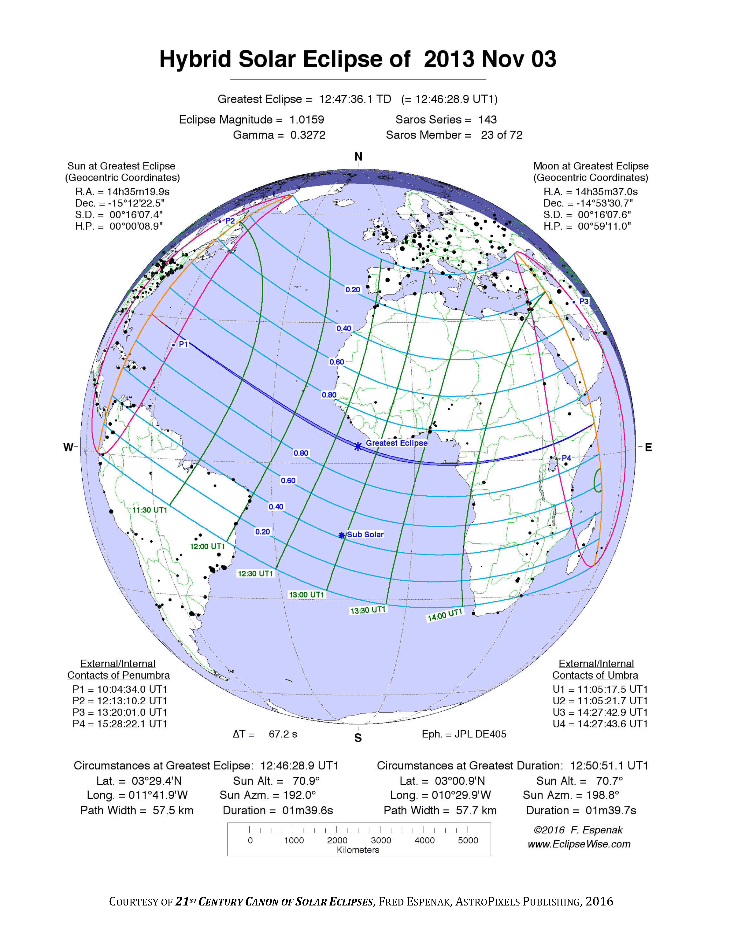 Eclipse Data: Hybrid Solar Eclipse of 2013 Nov 03