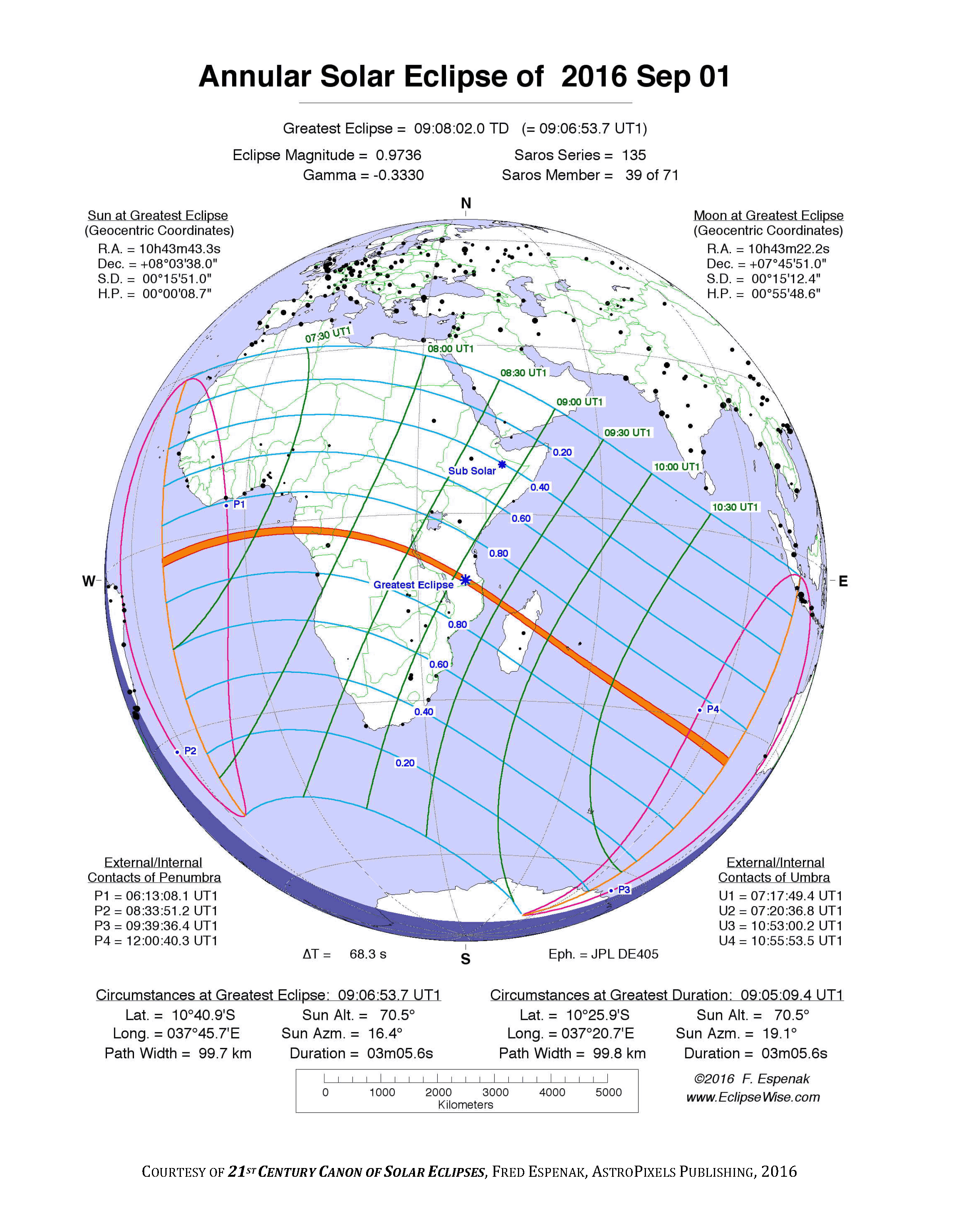 - Orthographic Map: Annular Solar Eclipse of 2016 Sep 01 - detailed global map of eclipse visibility (Key to Figure)