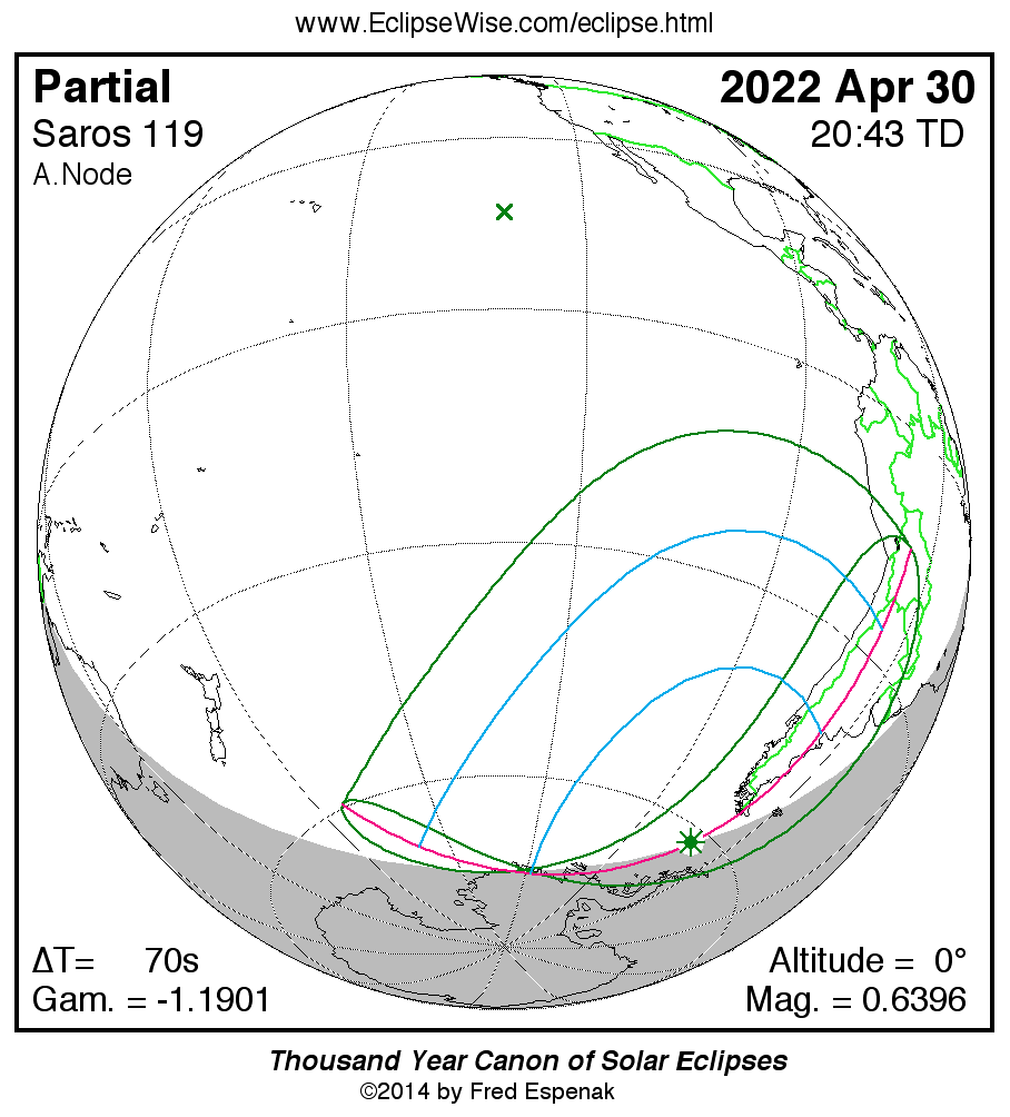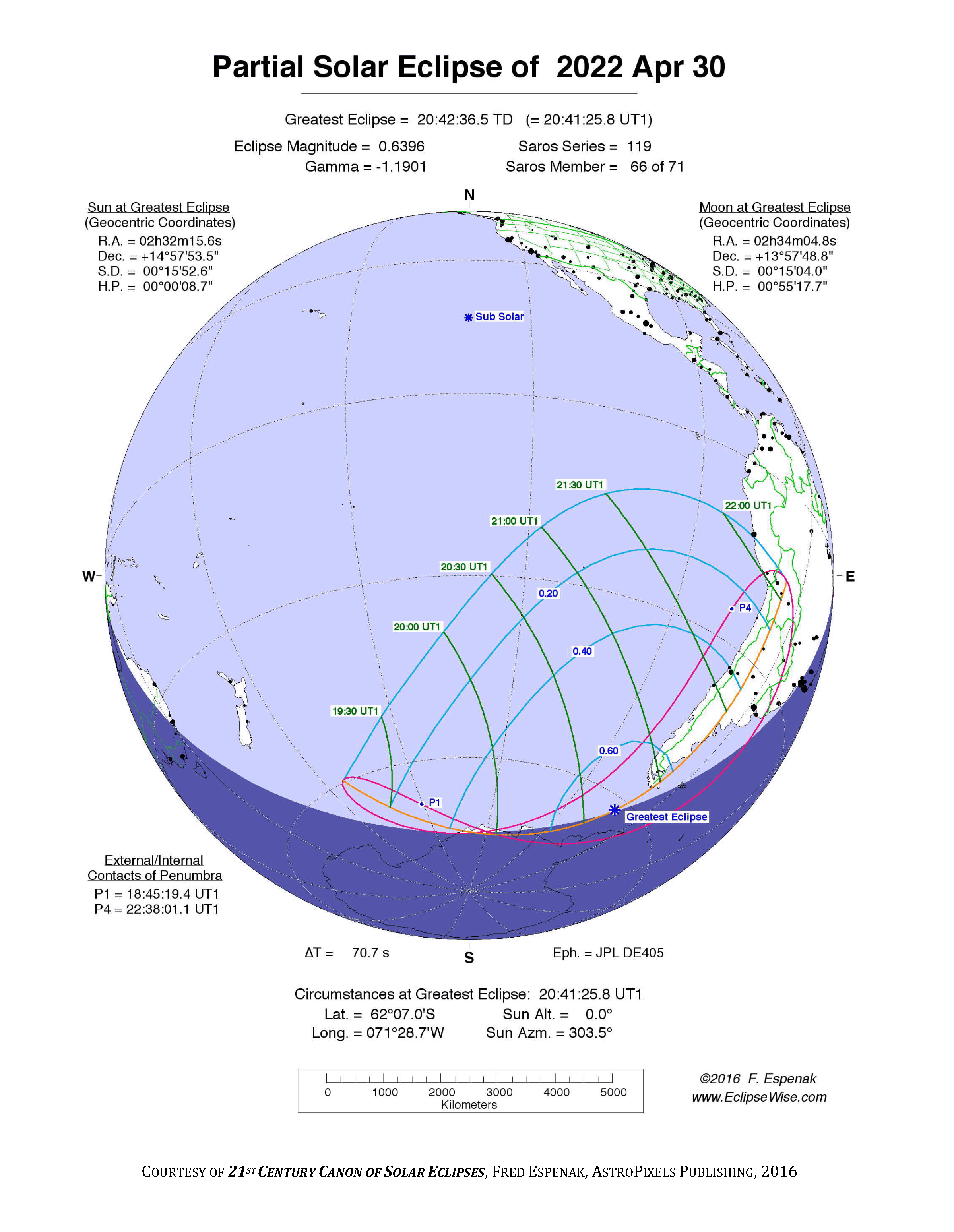 - Orthographic Map: Partial Solar Eclipse of 2022 Apr 30 - detailed global map of eclipse visibility (Key to Figure)