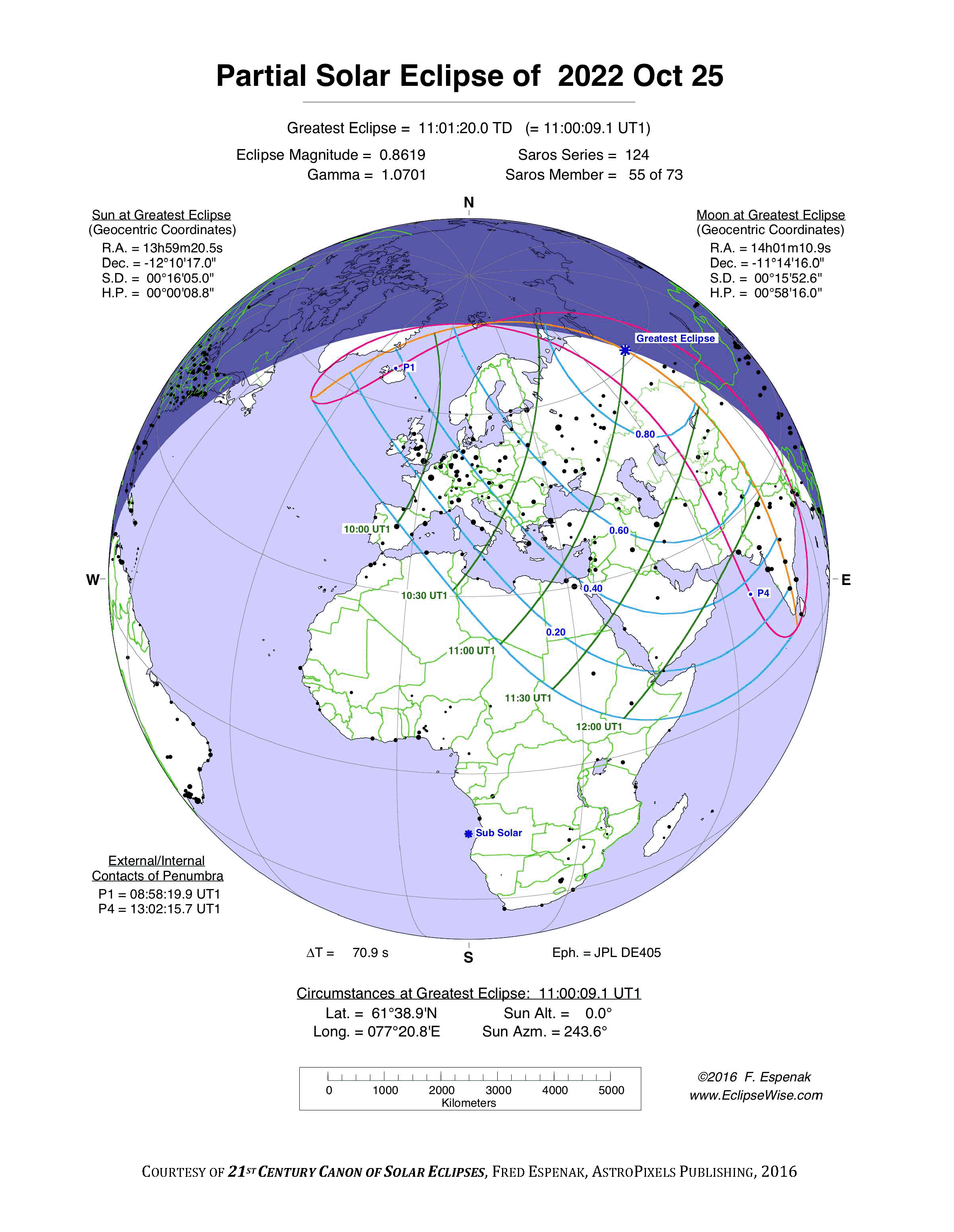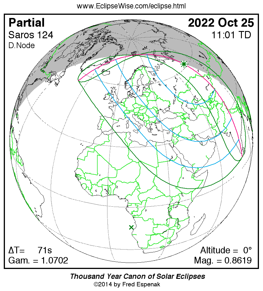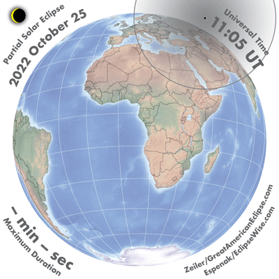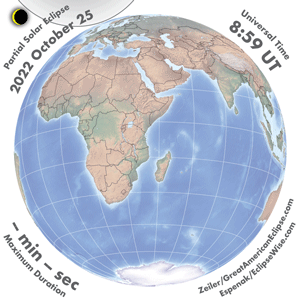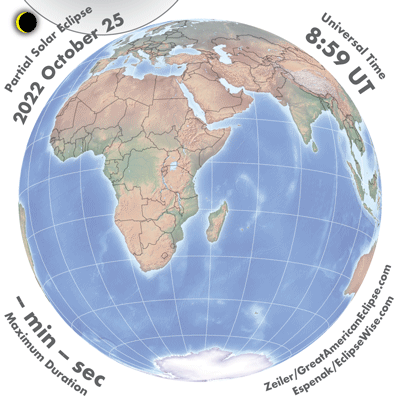 - Orthographic Map: Partial Solar Eclipse of 2022 Oct 25 - detailed global map of eclipse visibility (Key to Figure)