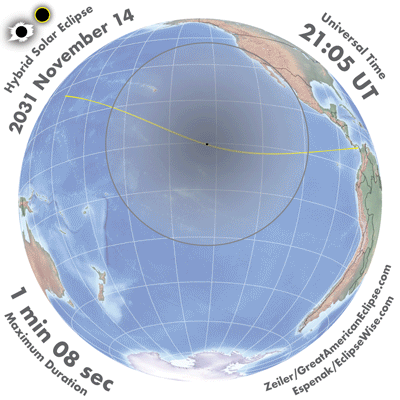 - Hybrid Solar Eclipse of 2031 Nov 14 - Google search for links to this eclipse
