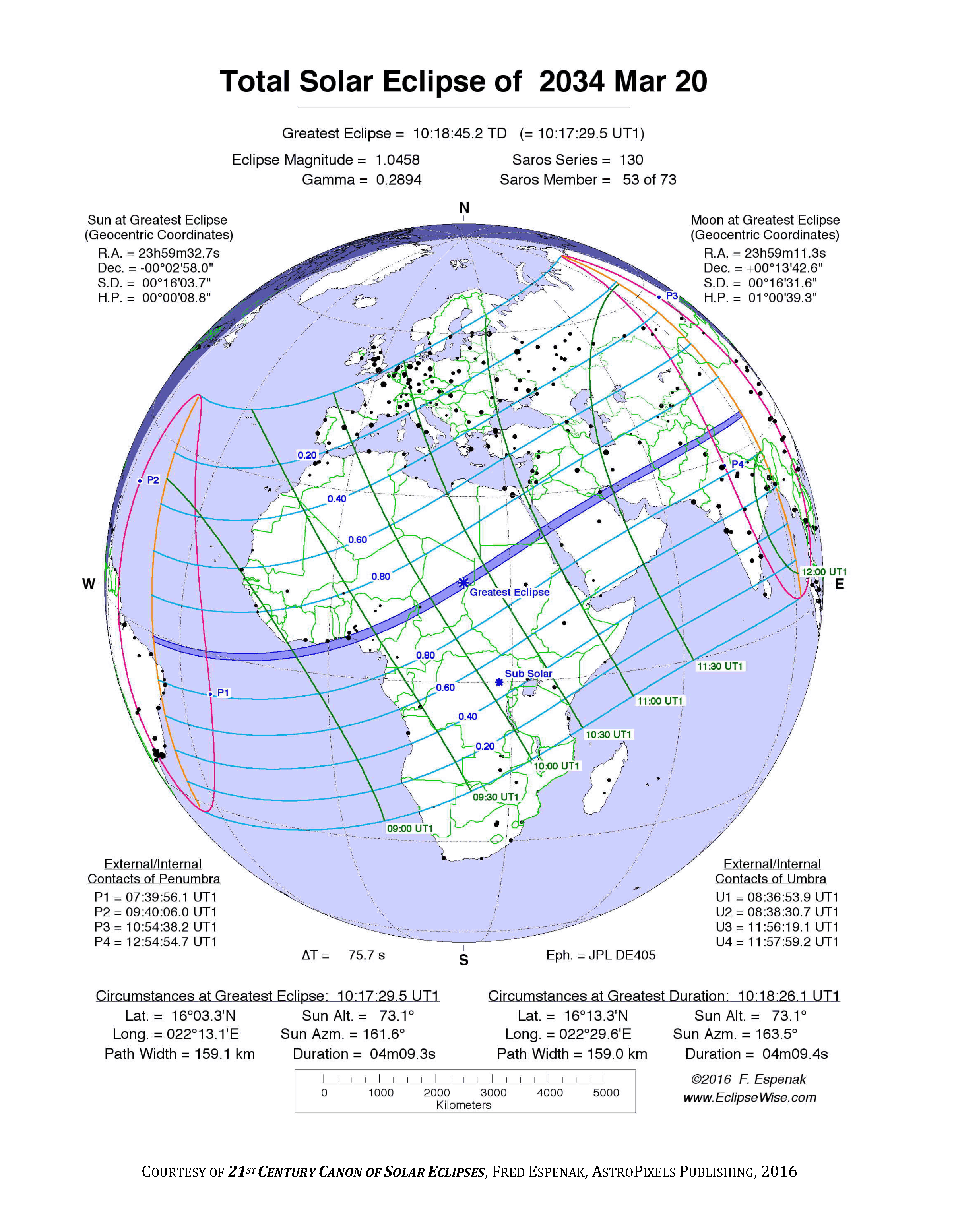 - Path Table: Total Solar Eclipse of 2034 Mar 20 - coordinates of the central line and path limits