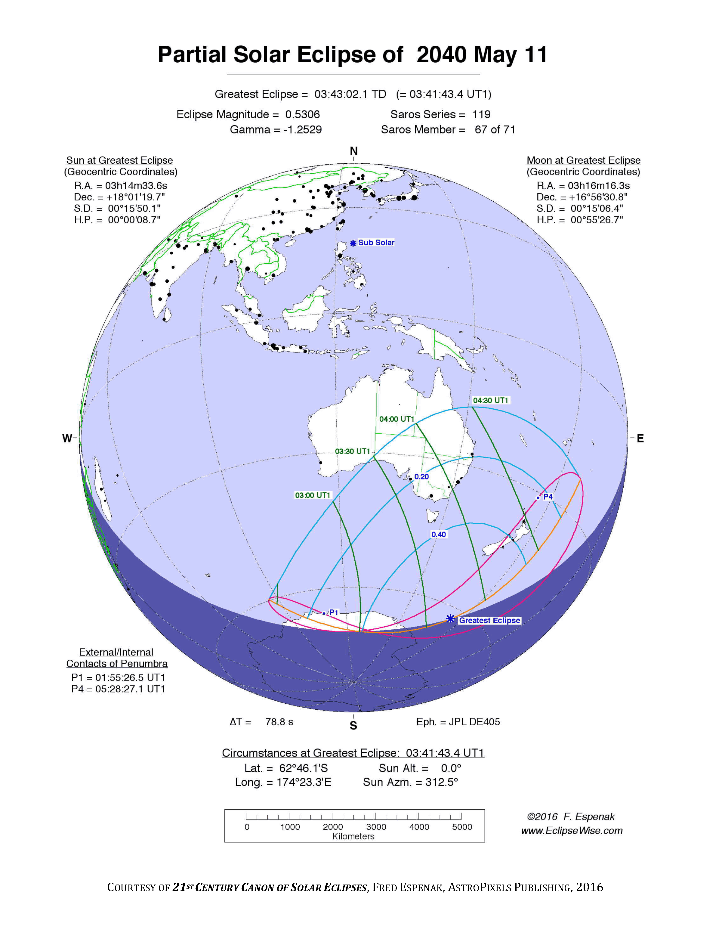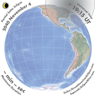 - Orthographic Map: Partial Solar Eclipse of 2040 Nov 04 - detailed global map of eclipse visibility (Key to Figure)