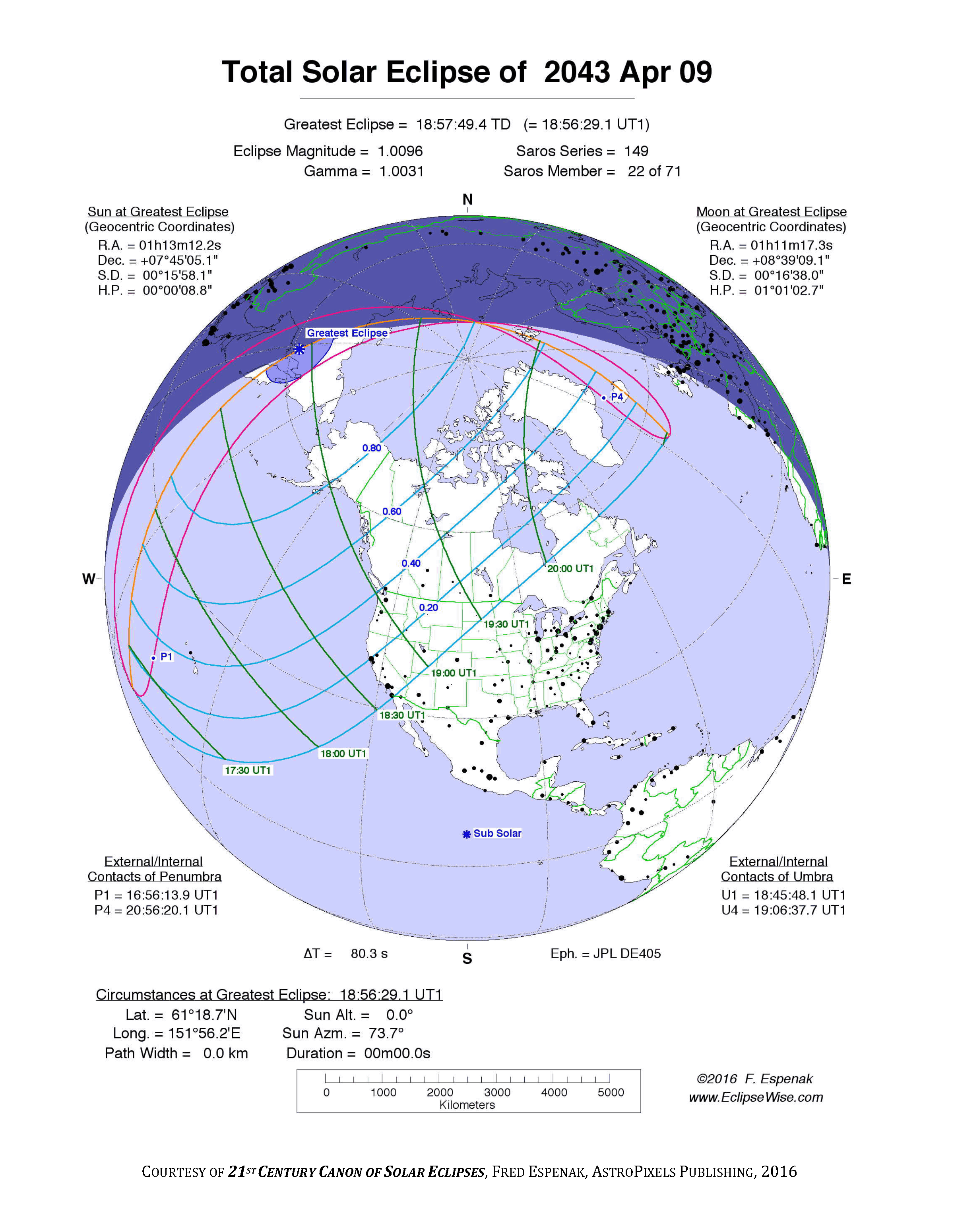 Eclipse Data: Total Solar Eclipse of 2043 Apr 09