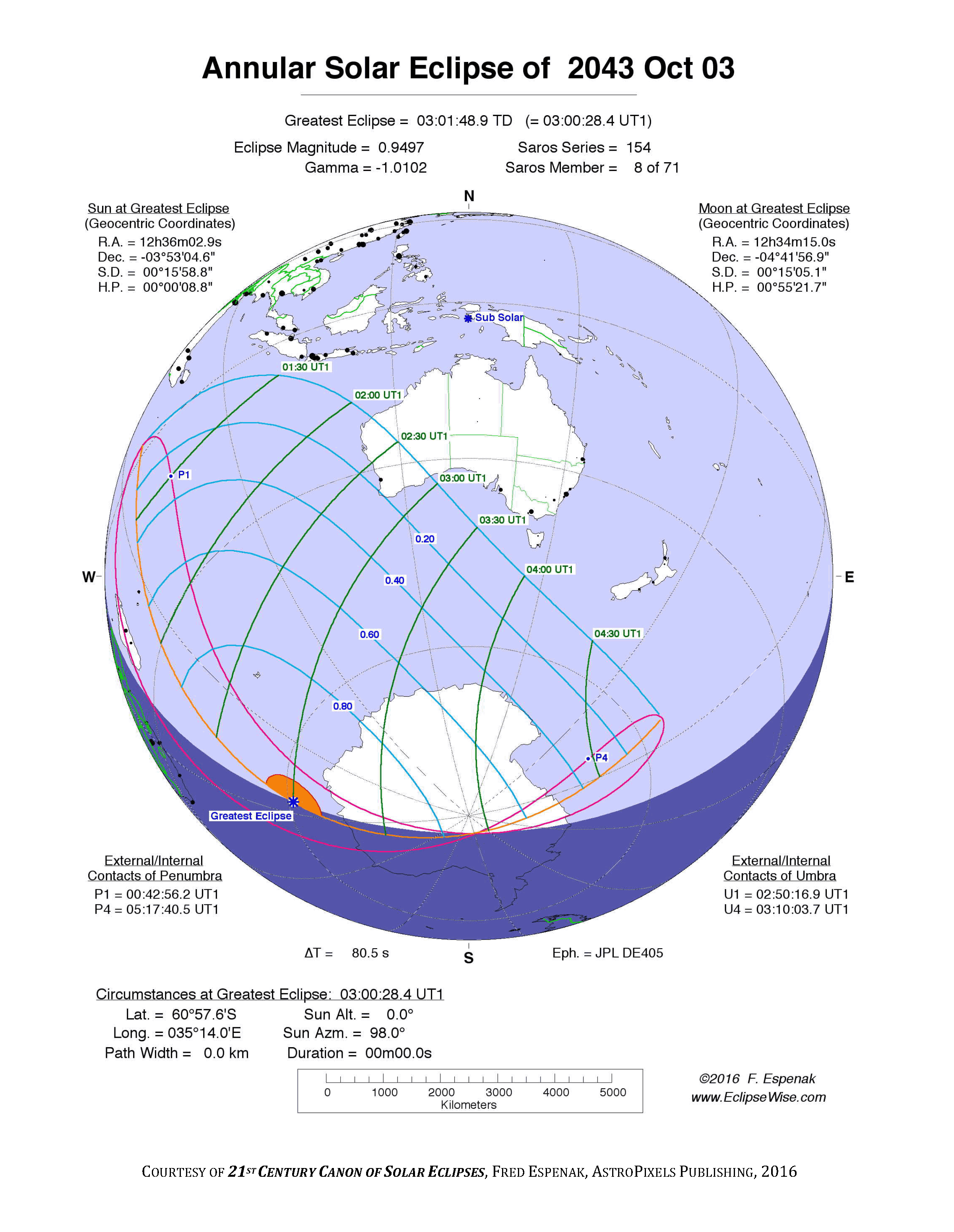 Eclipse Data: Annular Solar Eclipse of 2043 Oct 03