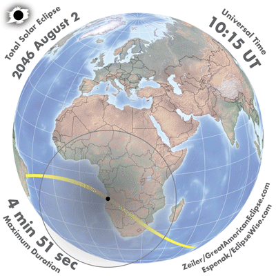 - Google Map: Total Solar Eclipse of 2046 Aug 02 - interactive map of the eclipse path
