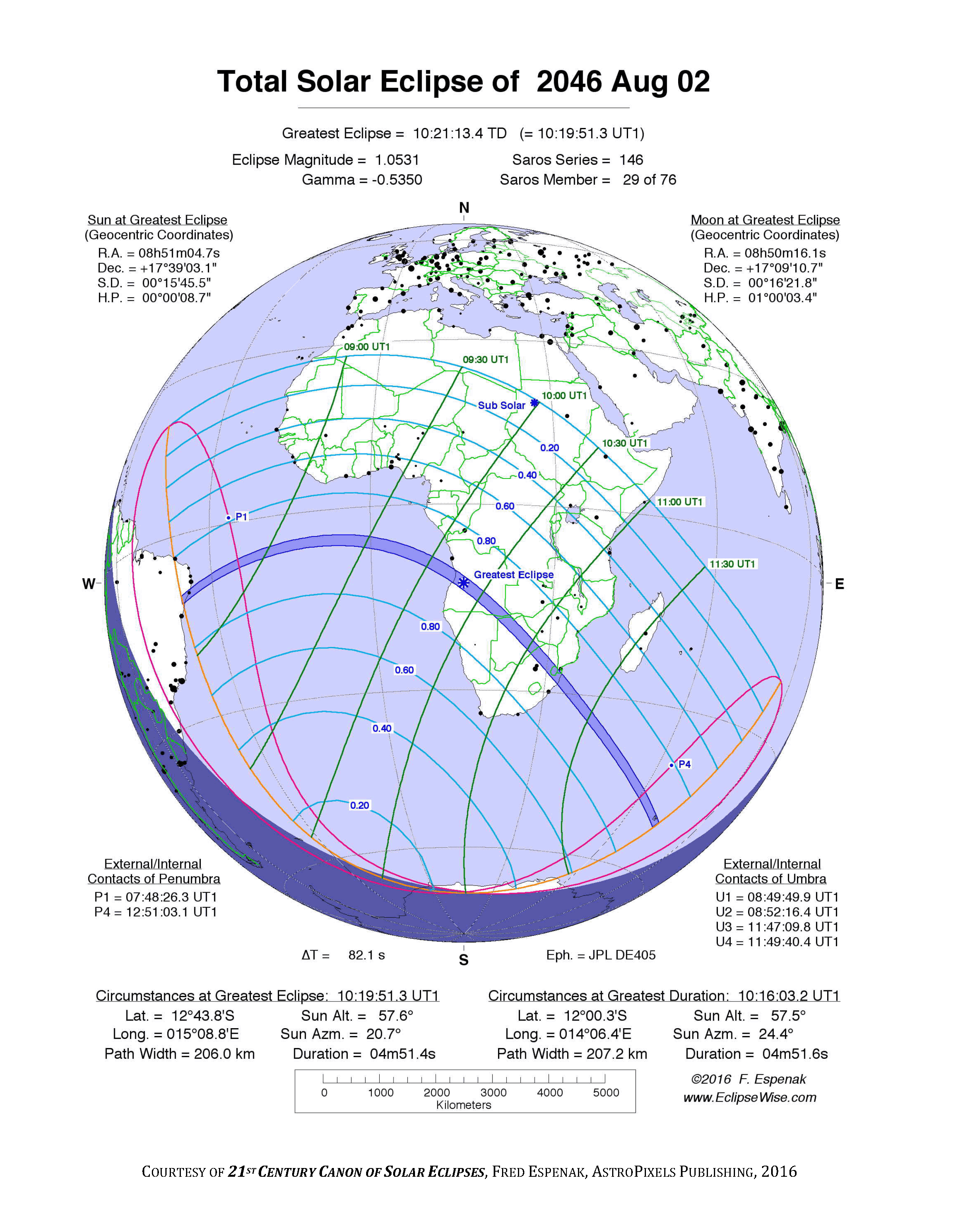 Eclipse Data: Total Solar Eclipse of 2046 Aug 02