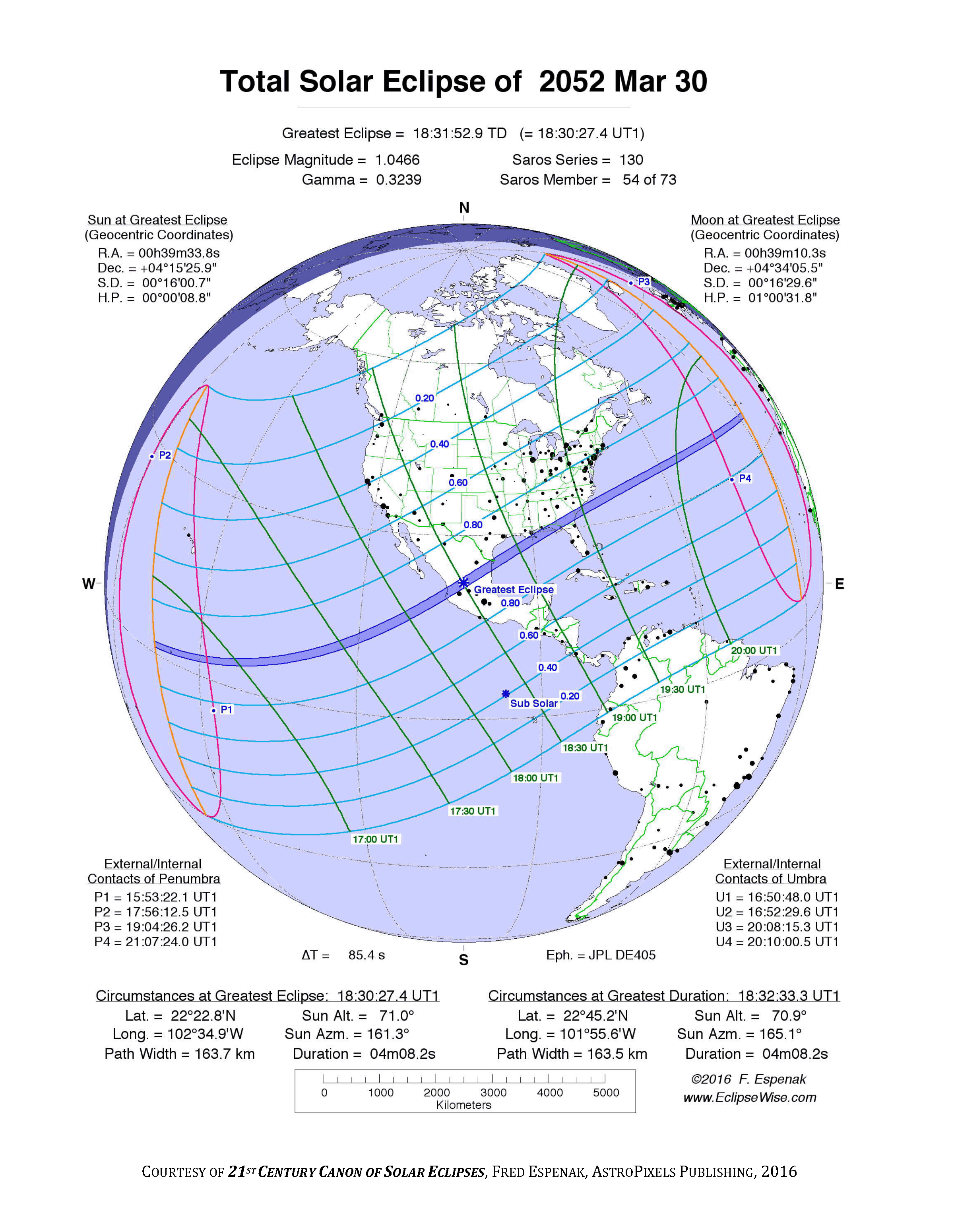 Eclipse Data: Total Solar Eclipse of 2052 Mar 30