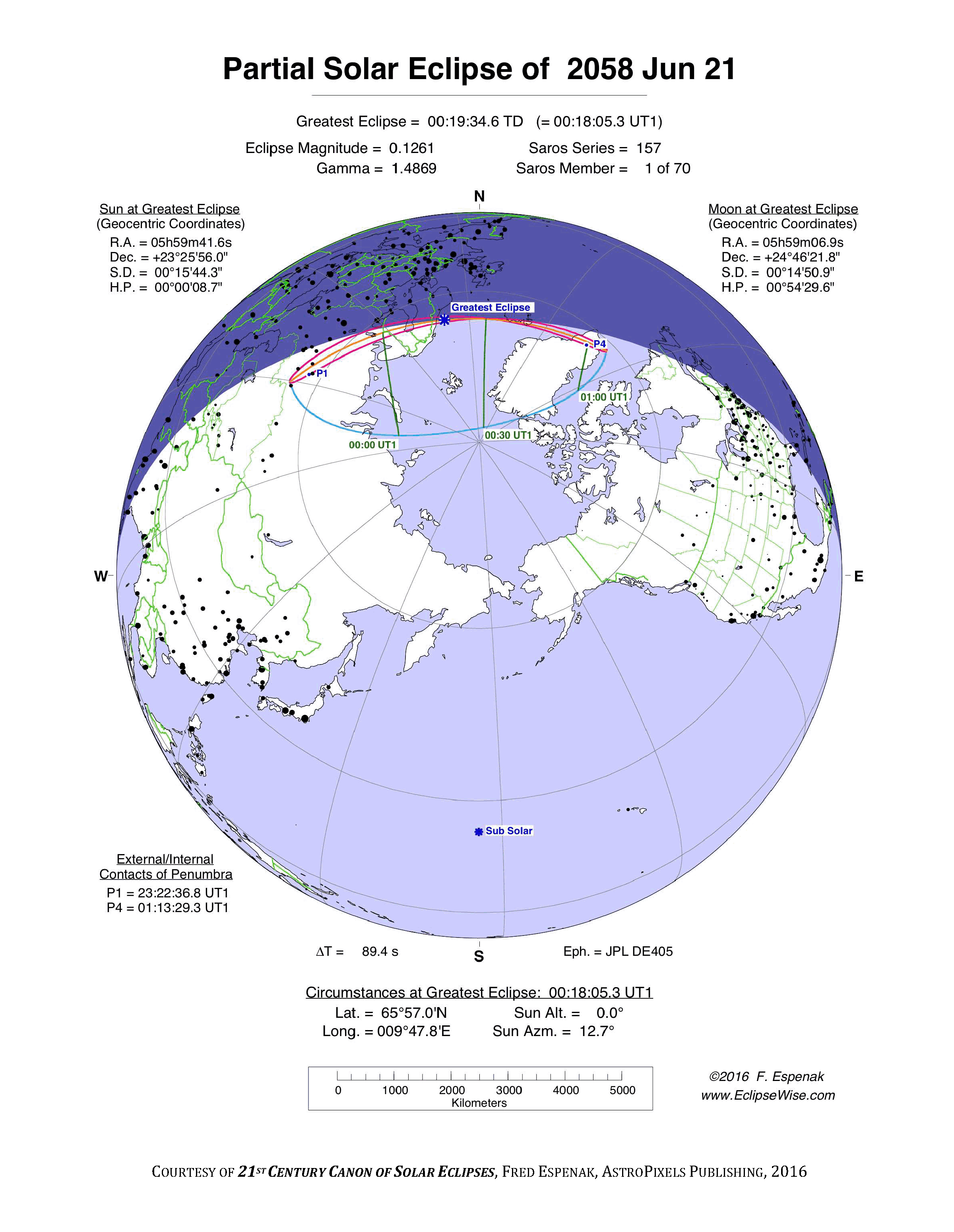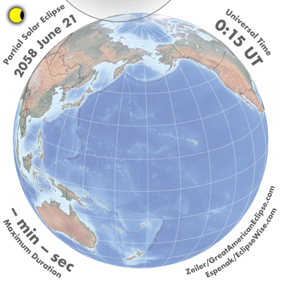 - Orthographic Map: Partial Solar Eclipse of 2058 Jun 21 - detailed global map of eclipse visibility (Key to Figure)