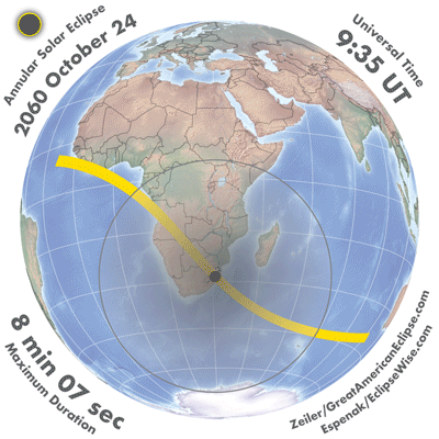 - Orthographic Map: Annular Solar Eclipse of 2060 Oct 24 - detailed global map of eclipse visibility (Key to Figure)