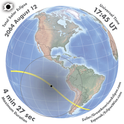 - Orthographic Map: Total Solar Eclipse of 2064 Aug 12 - detailed global map of eclipse visibility (Key to Figure)