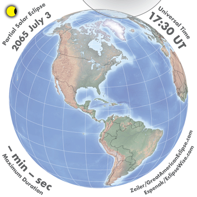 - Orthographic Map: Partial Solar Eclipse of 2065 Jul 03 - detailed global map of eclipse visibility (Key to Figure)