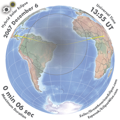 - Hybrid Solar Eclipse of 2067 Dec 06 - Google search for links to this eclipse