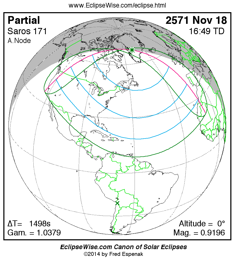 The instant of greatest eclipse takes place on 2571 Nov 18 at 16:49:12 TD (16:24:15 UT1).