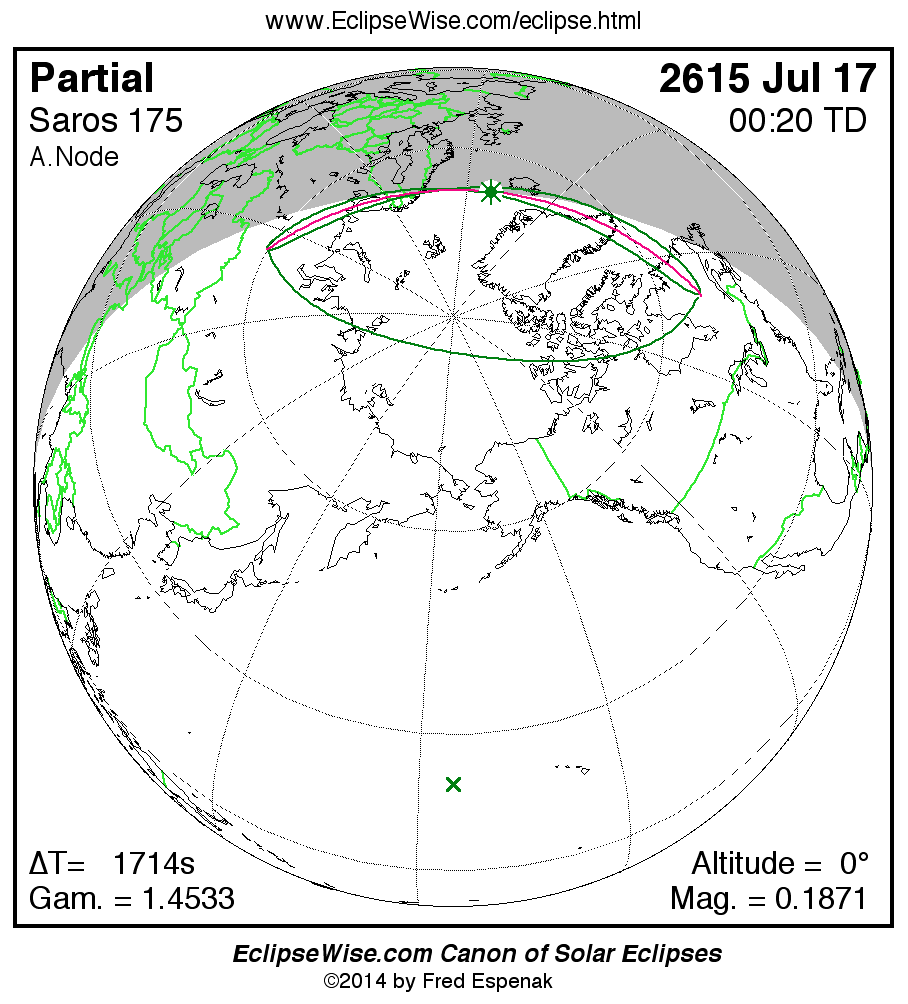 All eclipse calculations are by Fred Espenak, and he assumes full responsibility for their accuracy.