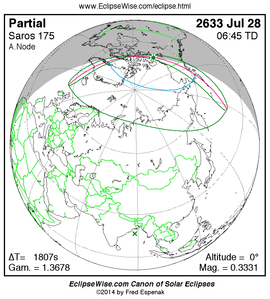 The instant of greatest eclipse takes place on 2633 Jul 28 at 06:45:11 TD (06:15:04 UT1).