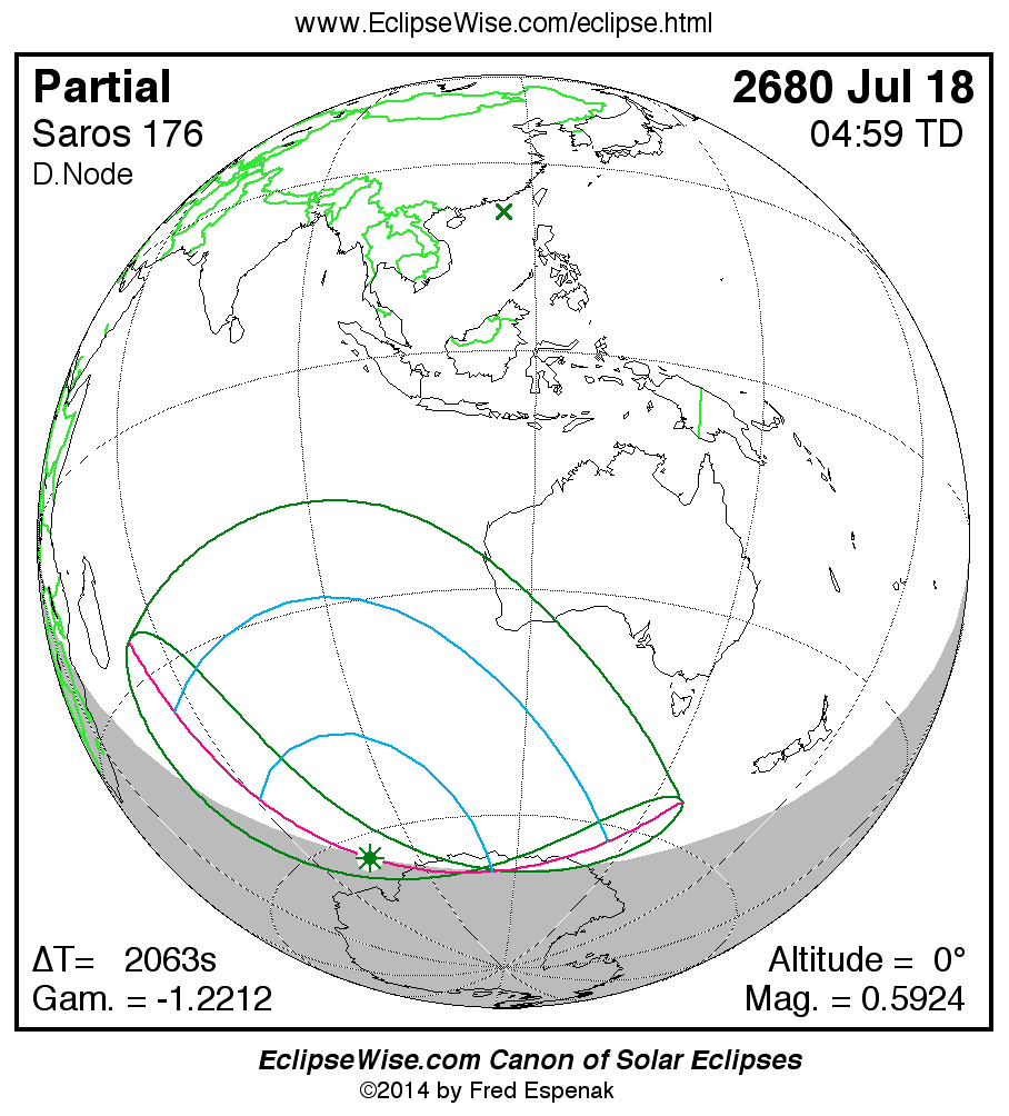 The instant of greatest eclipse takes place on 2680 Jul 18 at 04:58:39 TD (04:24:16 UT1).