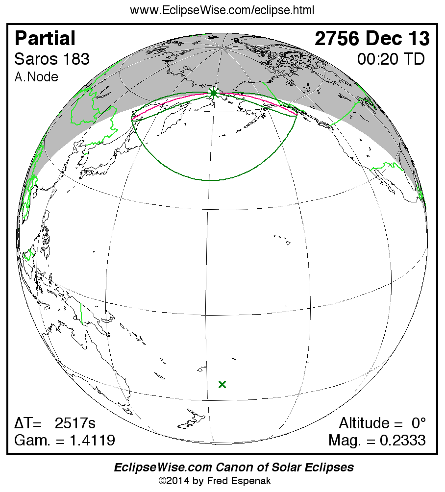 Another solar eclipse occurs one synodic month before the 2756 Dec 14 eclipse. It is the partial solar eclipse of 2756 Nov 14.