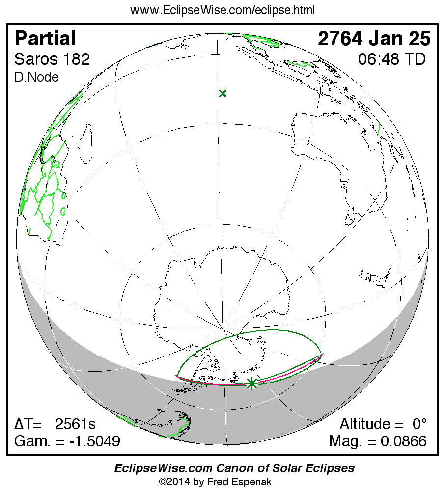 The instant of greatest eclipse takes place on 2764 Jan 25 at 06:48:10 TD (06:05:29 UT1).