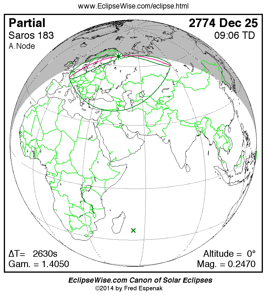 The instant of greatest eclipse takes place on 2774 Dec 25 at 09:06:20 TD (08:22:29 UT1).