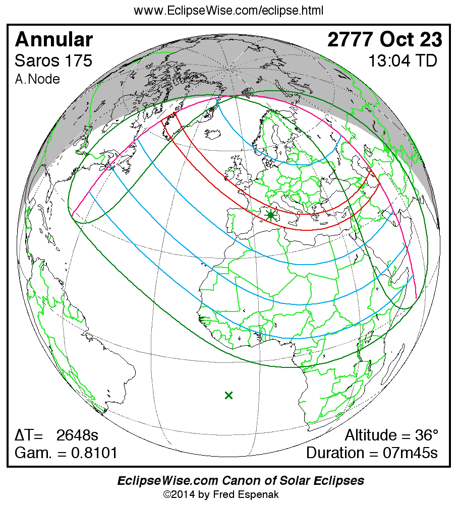 - Google Map: Annular Solar Eclipse of 2777 Oct 23 - interactive map of the eclipse path