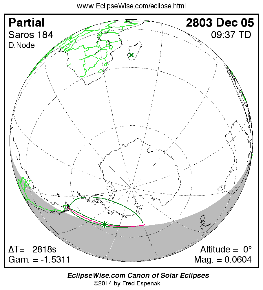 The instant of greatest eclipse takes place on 2803 Dec 05 at 09:36:30 TD (08:49:32 UT1).