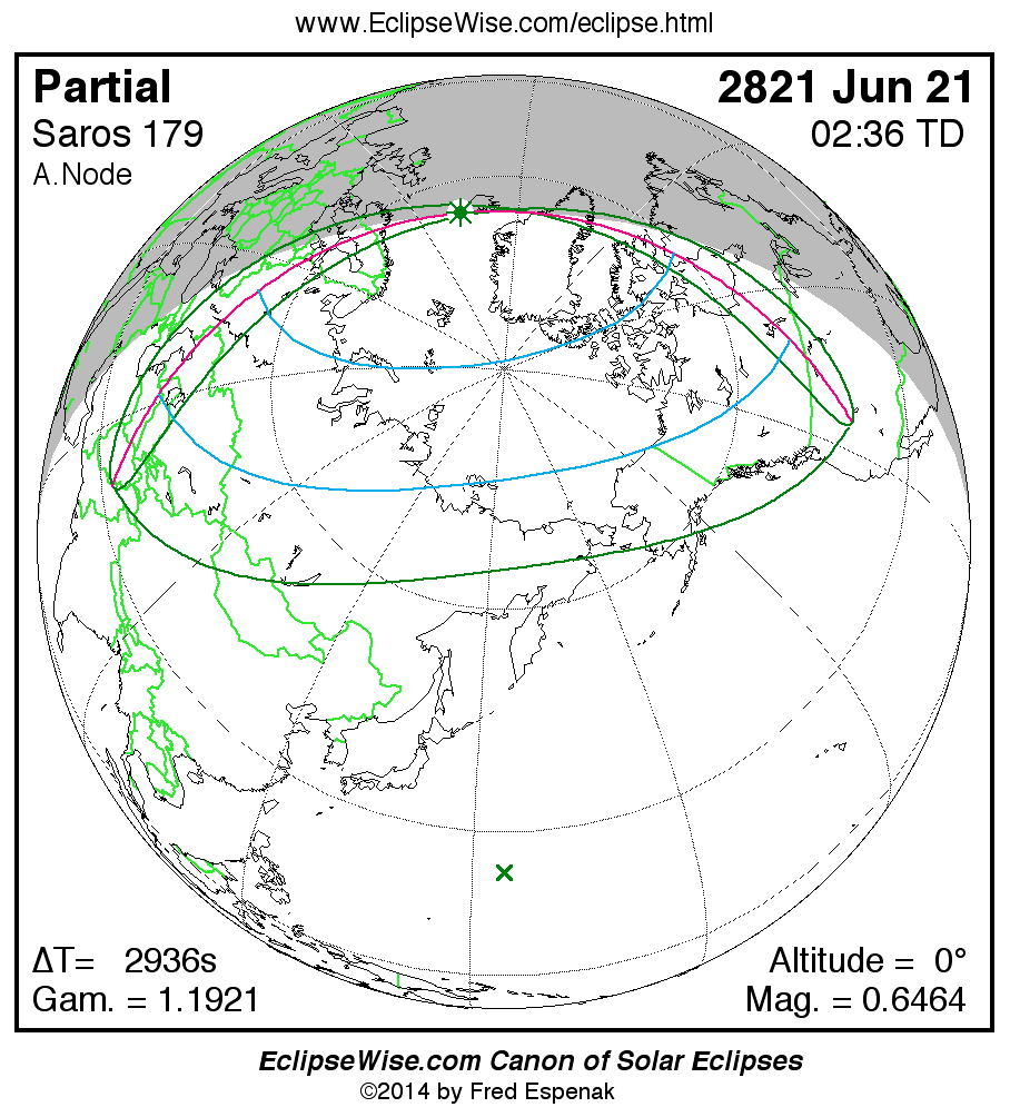 The instant of greatest eclipse takes place on 2821 Jun 21 at 02:35:47 TD (01:46:51 UT1).