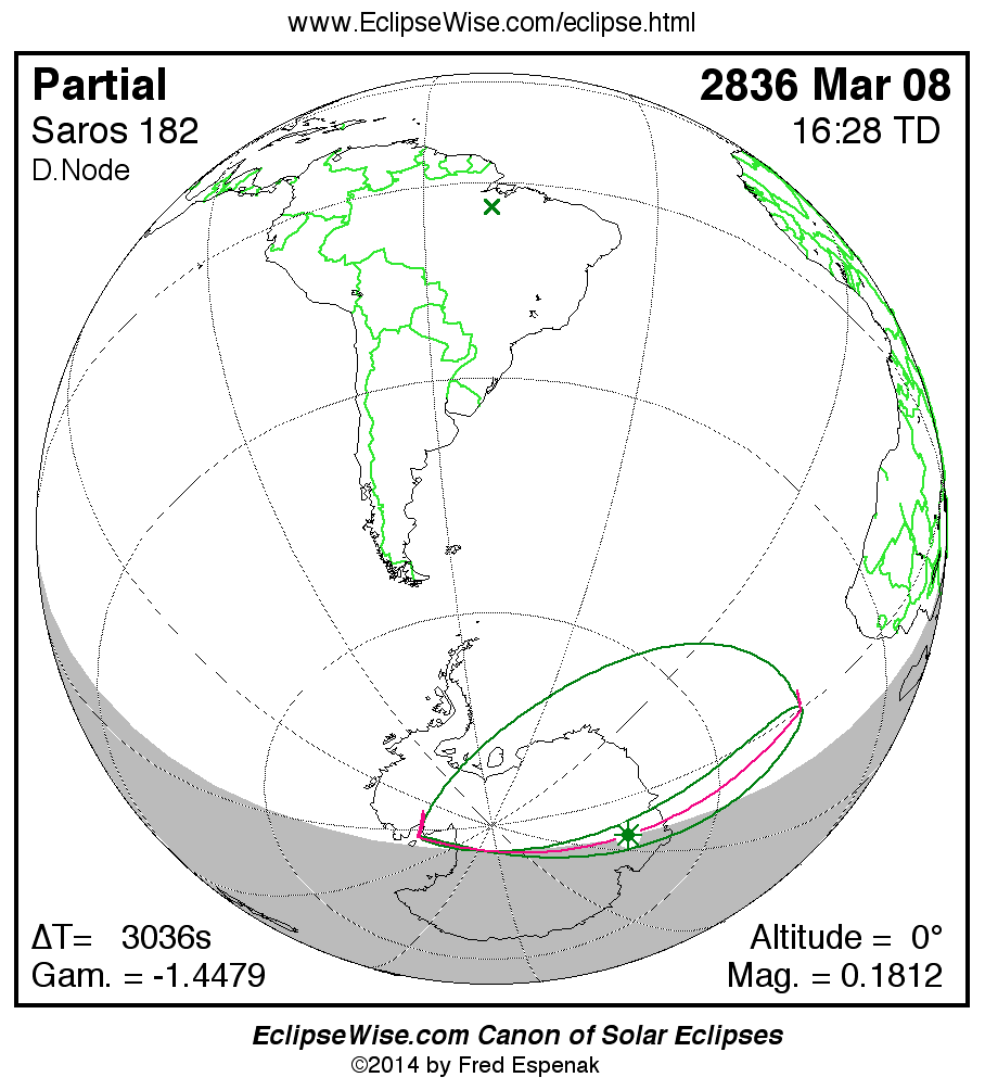 The instant of greatest eclipse takes place on 2836 Mar 08 at 16:28:16 TD (15:37:40 UT1).
