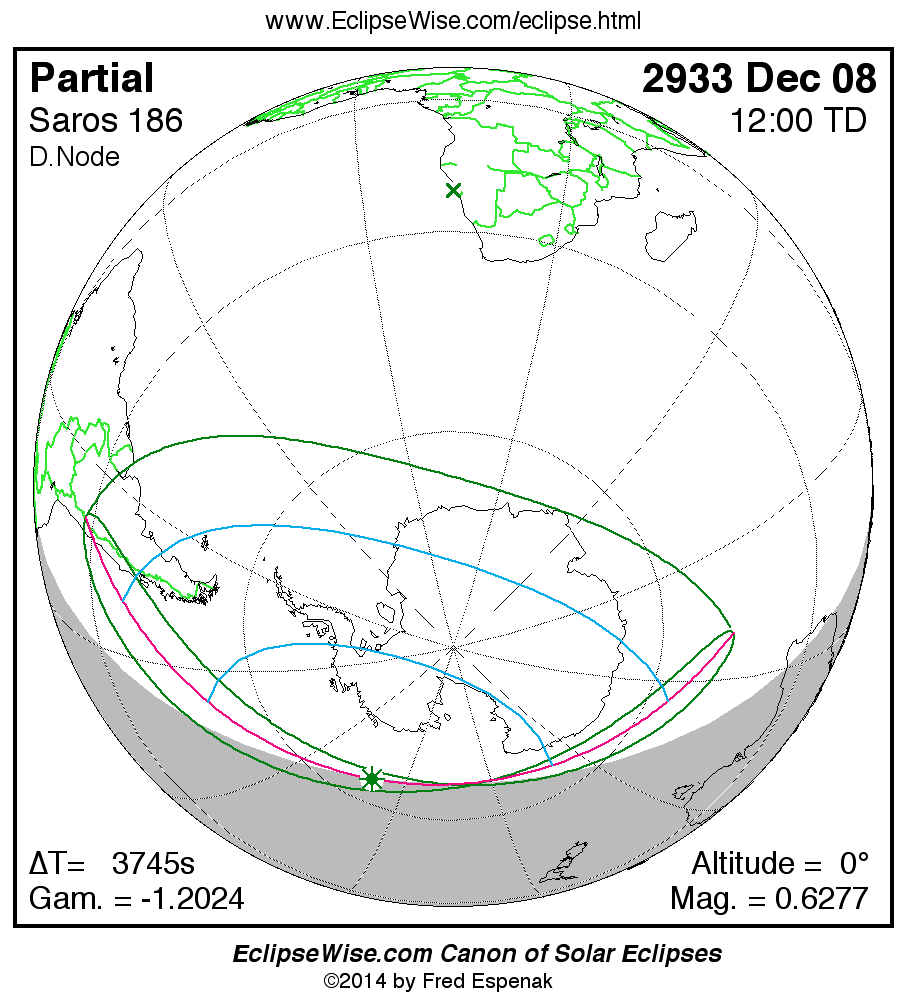 The instant of greatest eclipse takes place on 2933 Dec 08 at 12:00:15 TD (10:57:51 UT1).