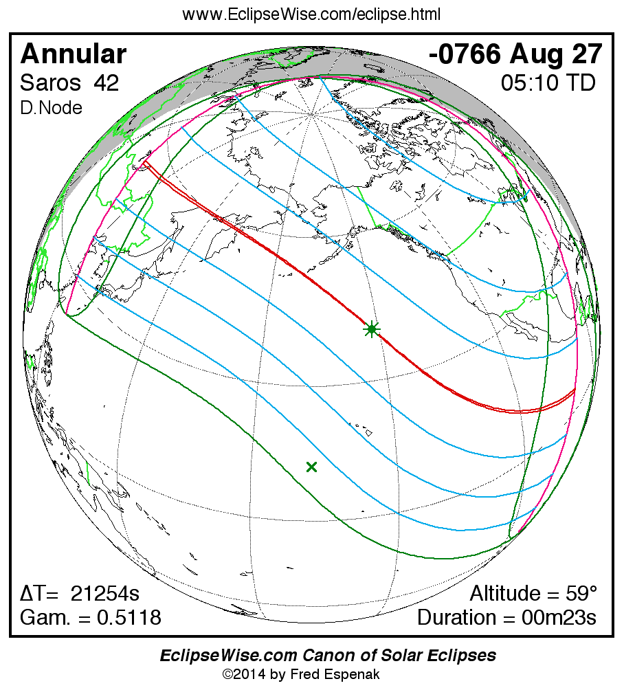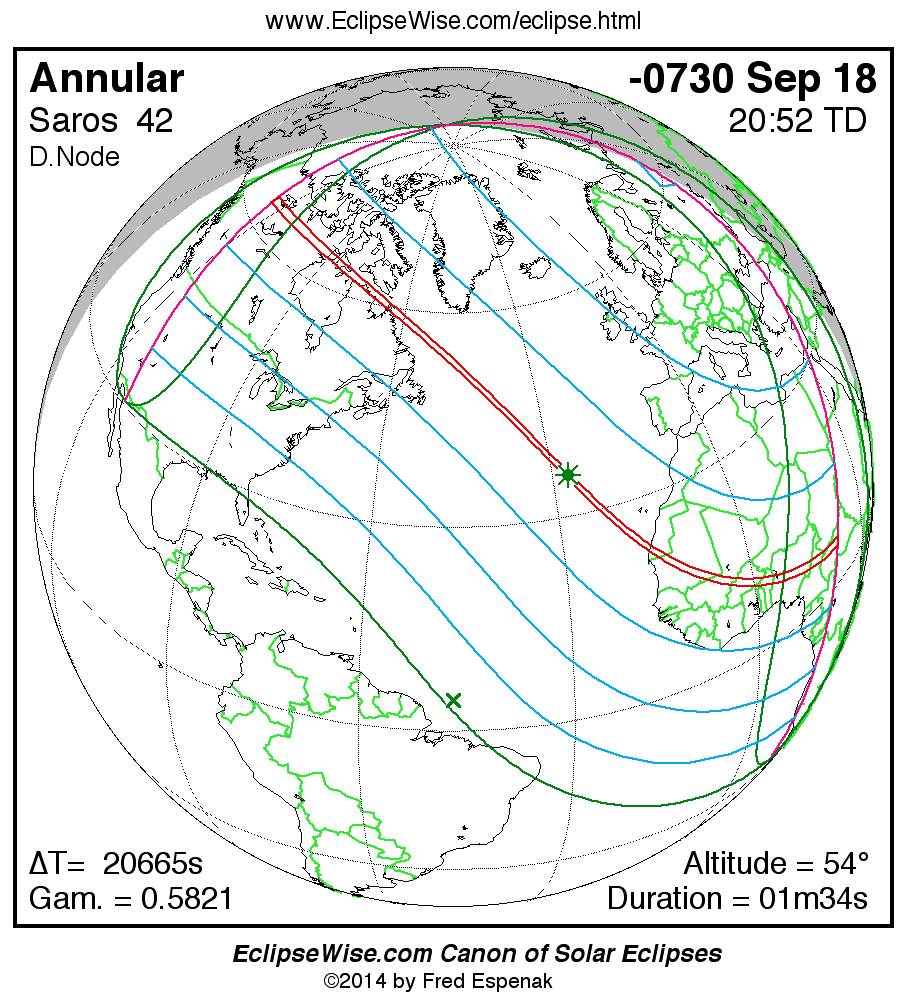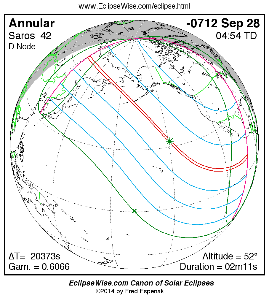 For more information on this series see Statistics for Solar Eclipses of Saros 42 .